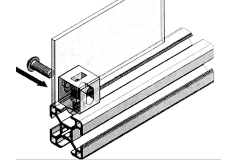 將此連接塊尾端直接插入型材槽坑內(nèi),轉(zhuǎn)動90度后即緊密固定在型材上,然后就可在型材上安裝有機(jī)玻璃等各種面板,再用螺栓鎖緊,安裝簡潔,拆卸方便。