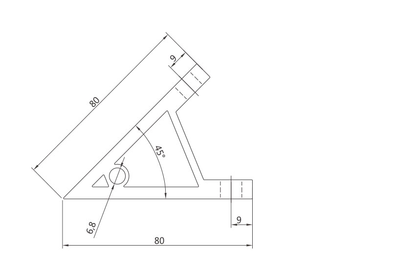 45度支架是從擠壓型材上截取料段,經(jīng)鉆孔加工而成。表面銀白陽極氧化(端面未氧化),連接強度高。靈活性和通用性能好,安裝簡單方便。主要用于型材的45度角連接。